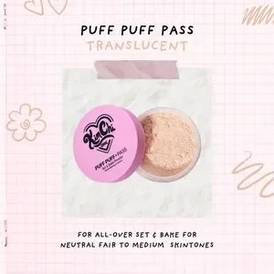 KimChi Chic Puff Puff Pass Set & Bake Powder in shade PPP03 Translucent is perfect for fair to medium skin tones. It's a lightweight loose powder that’s finely milled and easy to use to set or bake makeup $19 Full Size
