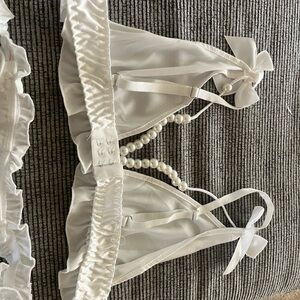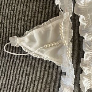 White satin bow with Ruffled Trim lingerie set with pearl accents