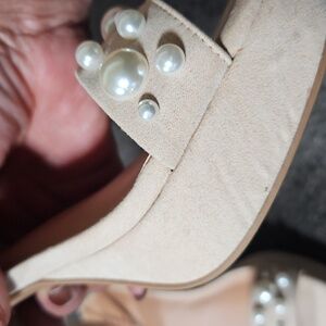 Torrid block heel, platform sandals with pearl embellishments and ankle straps. Wide width. Heel height 3", platform 1". Size 6WW