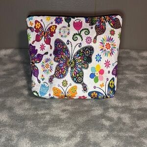 ✨ Colorful canvas makeup bag featuring vibrant butterflies and floral motifs