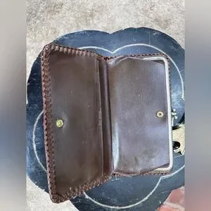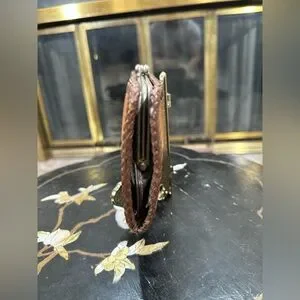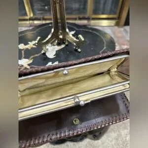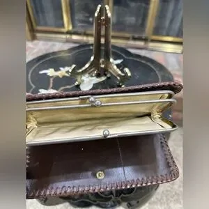 Vintage Tooled Leather Wallet Genuine Calf Kiss Lock Brown 7.5x3.75