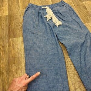 FREE PEOPLE Linen blend slouchy Waist tie chambray pants Womens size S
