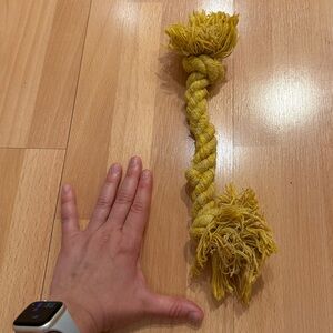 Durable yellow rope toy perfect for playful pets. Add a pop of color to your pet's playtime. Used condition as shown. Freshly laundered.
