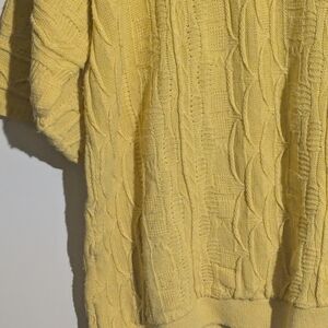 Stay cozy and stylish with this yellow cable knit sweater. Perfect for layering and adding a pop of color to your wardrobe.