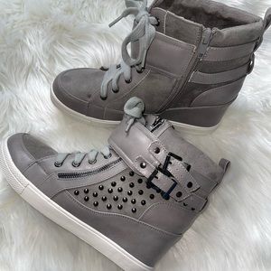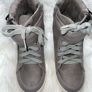 Elevate your style with these chic gray high-top sneakers. Perfect for casual outings, these shoes offer both comfort and fashion-forward design. The sleek gray color adds a versatile touch to any outfit.