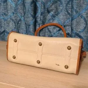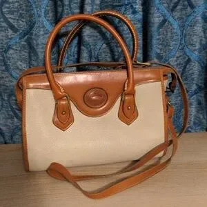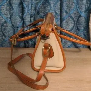 SOLD Dooney & Bourke London Tan and Cream Satchel with Vintage Charm Crossbody