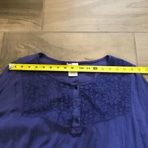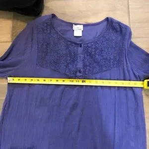 Vintage Gunit Fashions Purple gauze dress pockets size 1X pockets roll up sleeves and lace floral lace.