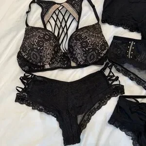 VS Elegant Black Lace Lingerie Set