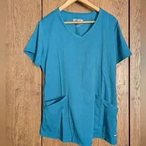Grey's Anatomy Teal Two Pocket Scrub Top L