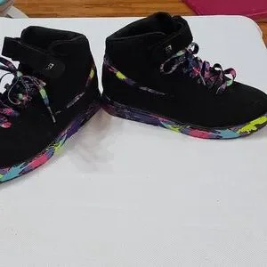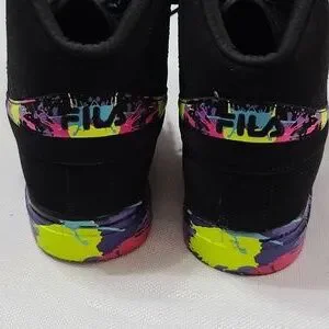 Fila Vulc 13 Paintball YOUTH Sneakers Shoes Black W/Florescent Splashes Sz 5 EUC. High/Mid tops. Hook&Loop and laces. Pre-owned, very good condition. (S409)