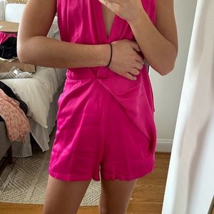 Zara satin effect short jumpsuit romper fuchsia dress pink small 9878/130