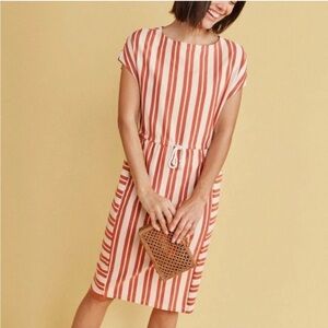 Marine Layer Lola Cocoon Red/Orange Stripe Dress Drawstring Pockets Sz L
