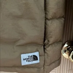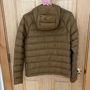 Stylish brown puffer jacket with front pockets. Perfect for fall and winter weather.