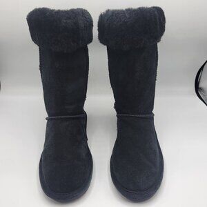 Bearpaw Black Suede Fur Lined Winter Boots Womens Size 6 Warm & Stylish