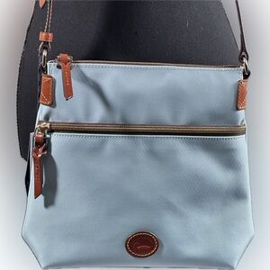 Dooney & Bourke Nylon Double Zip Crossbody Shoulder Bag Light Blue