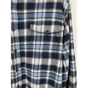 Jachs Mens XL Heavyweight Flannel Shirt Long Sleeve Button Up Blue White Plaid