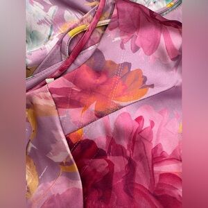 This exquisite piece features a blooming peonies print, spaghetti straps, V-neckline, and a tiered ruffle hem for a touch of whimsical charm.