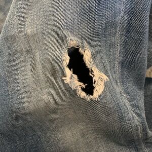 Mother brand women’s jeans in size 28. Style is The Looker Crop. Wash is Graffiti Girl and is intentionally distressed. Perfect if you are on the shorter side like me! See pics for measurements. Fully worn-through distressing on front knee - see last pic.