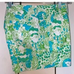 Lilly Pulitzer Green and Blue Shorts Vibrant Tropical Print In " It's A Zoo".