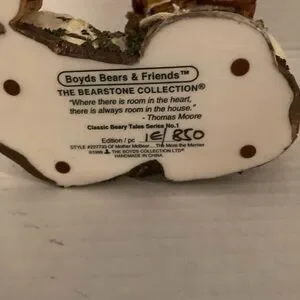 This is a great piece from Boyd’s Bears and Friends. The more the merrier 1999 Ol Mother McBear “where there is room in the heart there is room in the house “ Thomas Moore” Edition 1E/850 style #227733. Handmade in China