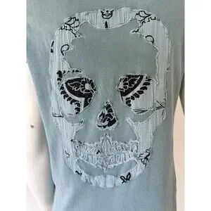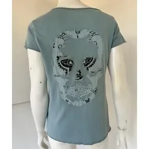 Zadig & Voltaire Tunisien MC Patch Skull Cotton Tee Shirt green/teal sz S