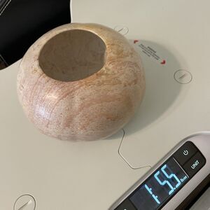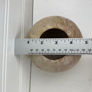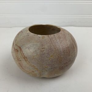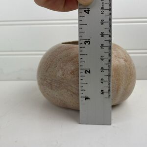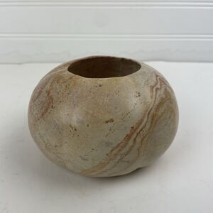 Carved Stone (Marble / Alabaster / Soapstone / Onyx?) Bowl Tealight Candle Holder Round Gourd Pink Beige - Good condition. This unknown type of stone is smooth and heavy. There are a couple tiny chips / flakes around the lip opening of the bowl. The bottom is signs W or M.
