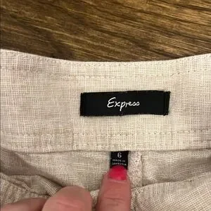 Elevate your summer wardrobe with these chic high-waist shorts from Express, crafted in a sophisticated cream hue. The shorts boast a nautical-inspired design, perfect for adding a touch of elegance to casual outings. Made from a textured fabric, they offer both style and comfort for warm-weather adventures.