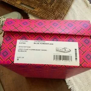 Tory Burch previously loved Joey flat form boat shoe, color/ Blue yonder, size 8. Features lace-up design and durable sole. As is!