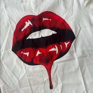 This CBR top features a striking red lip graphic on a white muscle tee, complete with a boxy fit and mandarin collar for a modern edge. The bold design and sleeveless style make it a standout piece for any casual outing.