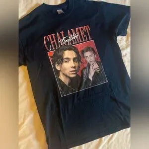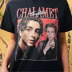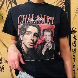 Timothee Chalamet, graphic tee, black cotton, short sleeve, streetwear, Y2K