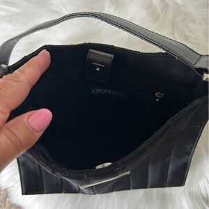 DKNY Black Pleated Shoulder Bag with Sleek Design