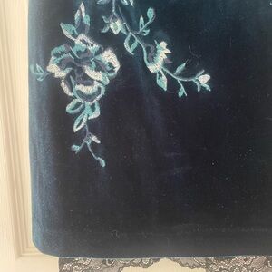 This stunning sheath dress from White House Black Market is a perfect choice for a cocktail night out. Crafted in a captivating blue hue, it features a sleeveless design with a scoop neckline and intricate embellishments that add a touch of elegance. The midi length and form-fitting silhouette ensure a sophisticated and stylish look.
