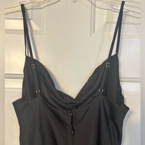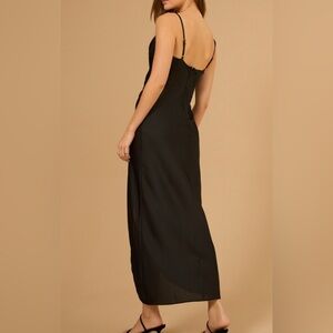 Perfect classic little black dress from Altar’d State. This maxi features a chic side wrap detail that reveals a hint of leg, with adjustable straps and a zipper for a comfortable, elegant fit. Sexy scoop neck and satiny fabric.