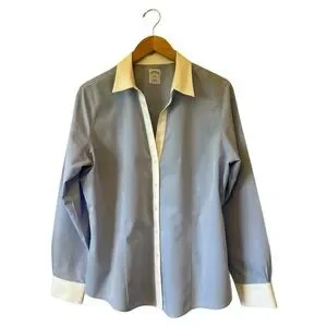 BROOKS BROTHERS 346 Womens Blue Fitted Non-Iron Button Front Shirt Size 16