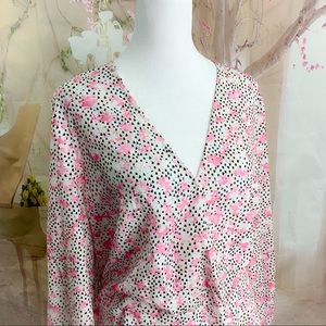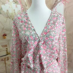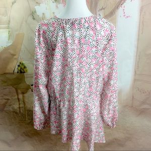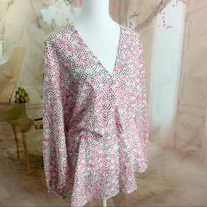 NEW Eloquii Pink Polka Dot Floral Print V Neck Blouse