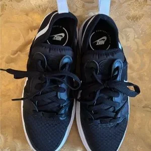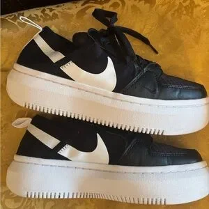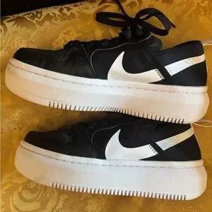 Like new Nike black and white platform sneakers size 7. Please look at pictures for minuscule markings. Super cute! You can wear with everything.