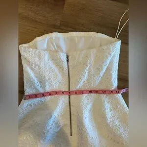 Alice + Olivia White Strapless Fit & Flare Eyelet Lace Mini Dress