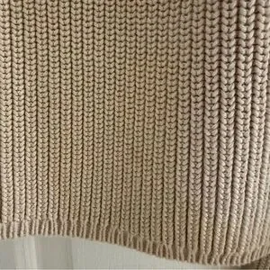 Beautiful preowned Jenni Kayne cotton Fisherman sweater in color oatmeal. Size XS. Good used condition with a small, light stain in the lower bottom side (very faint, see close up pic)x.