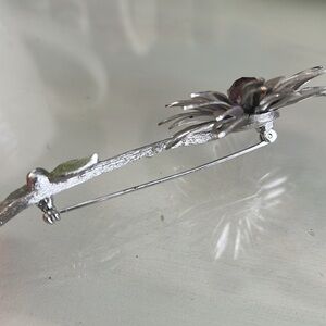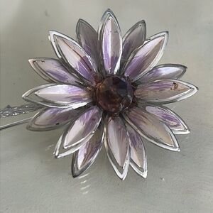 Vintage Large Purple Enamel Metal Flower Brooch Pin