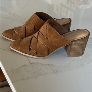 LC Lauren Conrad Brown Mules with Crisscross Stitching