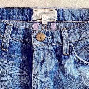 * Bohemian, boho chic, Beachy, coastal, Y2K, 90s, unique, rare, artsy, tropical, denim lover, bleached print, rigid denim