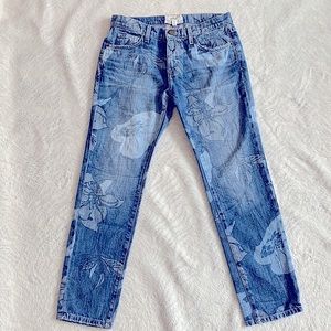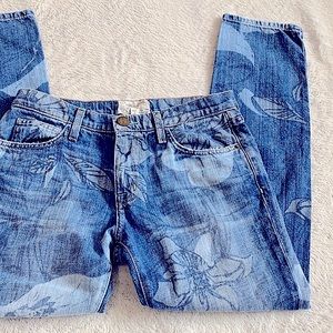 Current Elliott Hawaiian Floral Cropped Boyfriend Jeans Womens Size 24 Y2K
