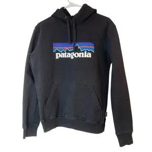 Unisex Patagonia Black Pullover Hoodie P-6 Uprisal Logo Sz S RA10051 EUC fleece