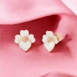 NWT Kate Spade Precious Pansy Mother of Pearl Flower White & Gold Stud Earrings