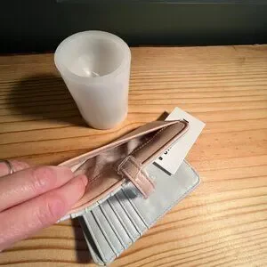 *The light pink wallet is for sale, not the black one. The black one is from the Steve Madden website for more reference.