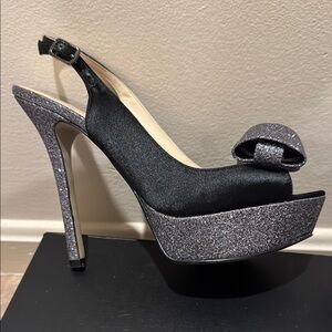 Enzo Angiolini Black and Silver Platform Heels EUC