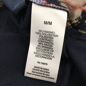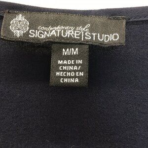 Signature Studio Blouse Women Size Medium Navy Blue Floral Roll Tab Sleeve Lace