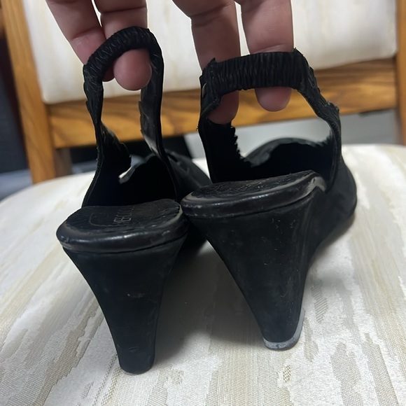 !SOLD! AEROSOLES Black Leather Slip On U Point Low Heel Wedge Shoes size 6