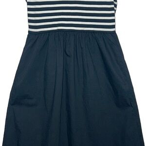 NWT J. Crew Factory Striped Short-Sleeve Knit Mixi Dress with Scoop Neck, Short Sleeves, and Pockets, Black & White, Size XS.