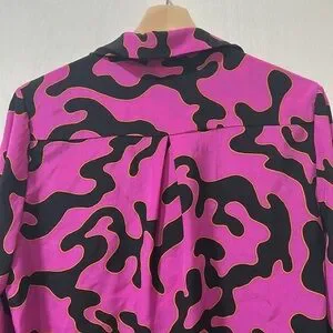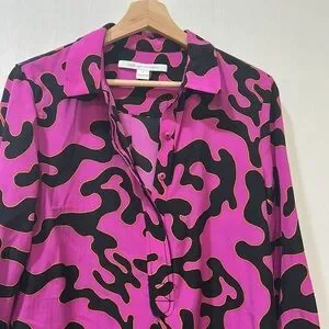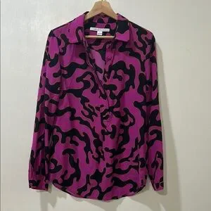 DIANE VON WOMEN PULLOVER BLOUSE PINK BLACK LONG SLEEVE 100 % SILK Sz 6